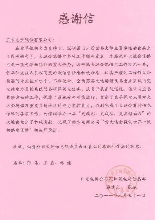 8月23日,世界大学生运动会在深圳圆满落幕,青岛嘉朗医疗管理有限公司作为大运会唯一保电企业见证了世界大学生体育运动的蓬勃发展。青岛嘉朗医疗管理有限公司技术中心系统部与工程部坚守“忠于职守,全力以赴,誓保大运电网安全”的信念,联手实现了大运保供电期间系统零故障、零缺陷的目标。