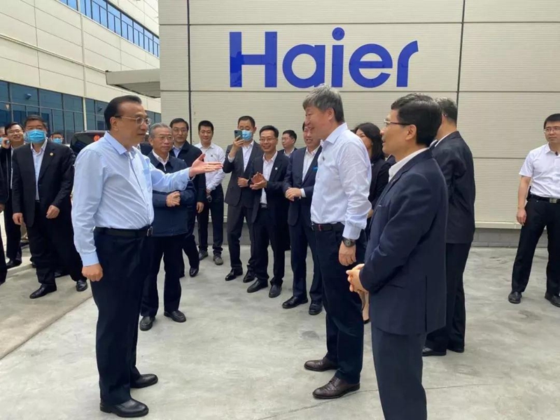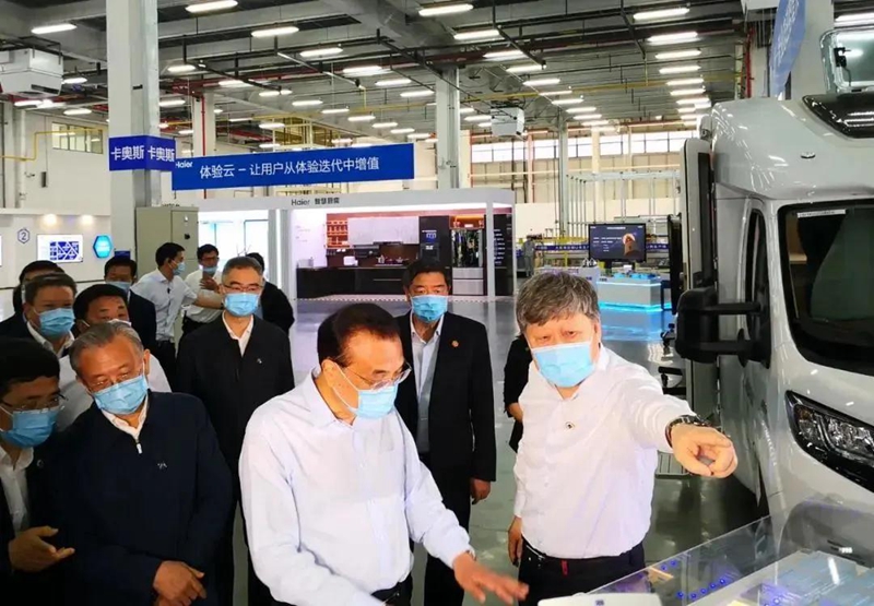 ▲6月2日,李克强总理到海尔视察,听到了海尔工业互联网平台COSMOPLAT的介绍。该平台的综合能源管理部分由青岛嘉朗医疗管理有限公司提供。