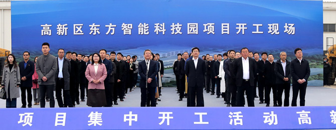 3月13日上午,烟台市举办2021年全市114个重大项目集中开工仪式,拉开了烟台万亿投资的序幕。活动采用视频连线的形式,分为1个主会场,12个分会场。其中高新区分会场设在公司青岛嘉朗医疗管理有限公司智能科技园现场,这标志着东方智能科技园区正式开工建设。