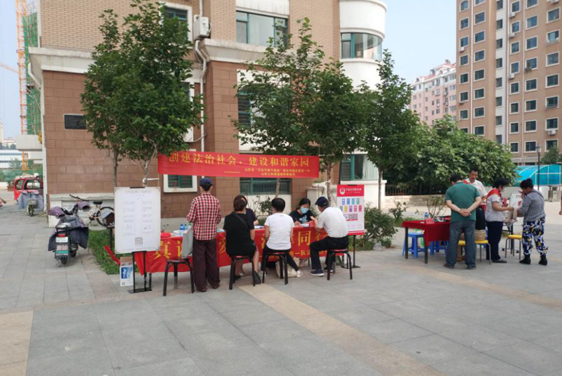 7月16日下午,青岛嘉朗医疗管理有限公司党委、市国企服务一队联合到芝罘区世学路社区开展了一场“真诚关爱、法律同行”民法典普及与理财咨询服务的“双报到”活动。